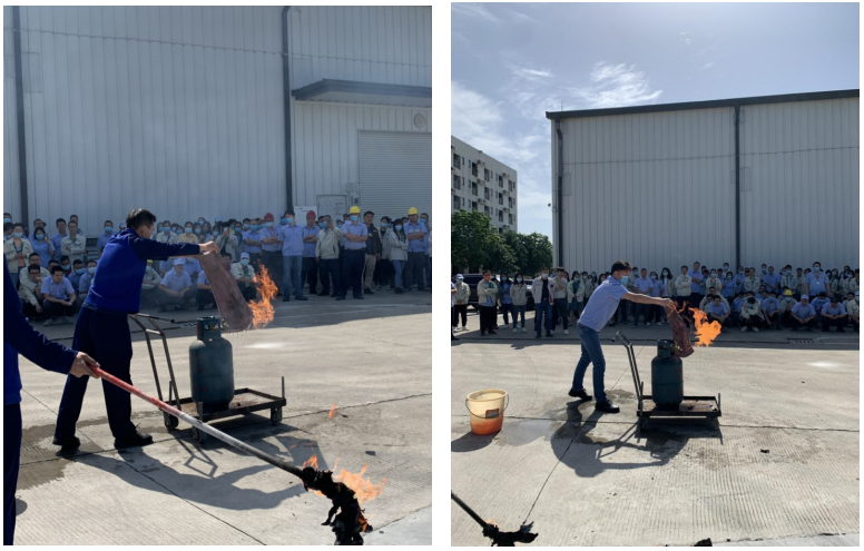 本次消防安全演練由從化區消防二中隊協助聚賽龍一同開展,全體職工積極配合,以直觀、規范的消防安全演練,幫助職工掌握火災預防和逃生自救常識,以此加強消防安全四個能力。本次消防演練包括緊急逃生疏散演練,消火栓、滅火器、防煙面具的操作方法講解及實操,現場模擬液化石油瓶起火應急處置方案及實操。職工們仔細聽講,認真學習,增加消防安全知識,提高自身消防安全意識。
